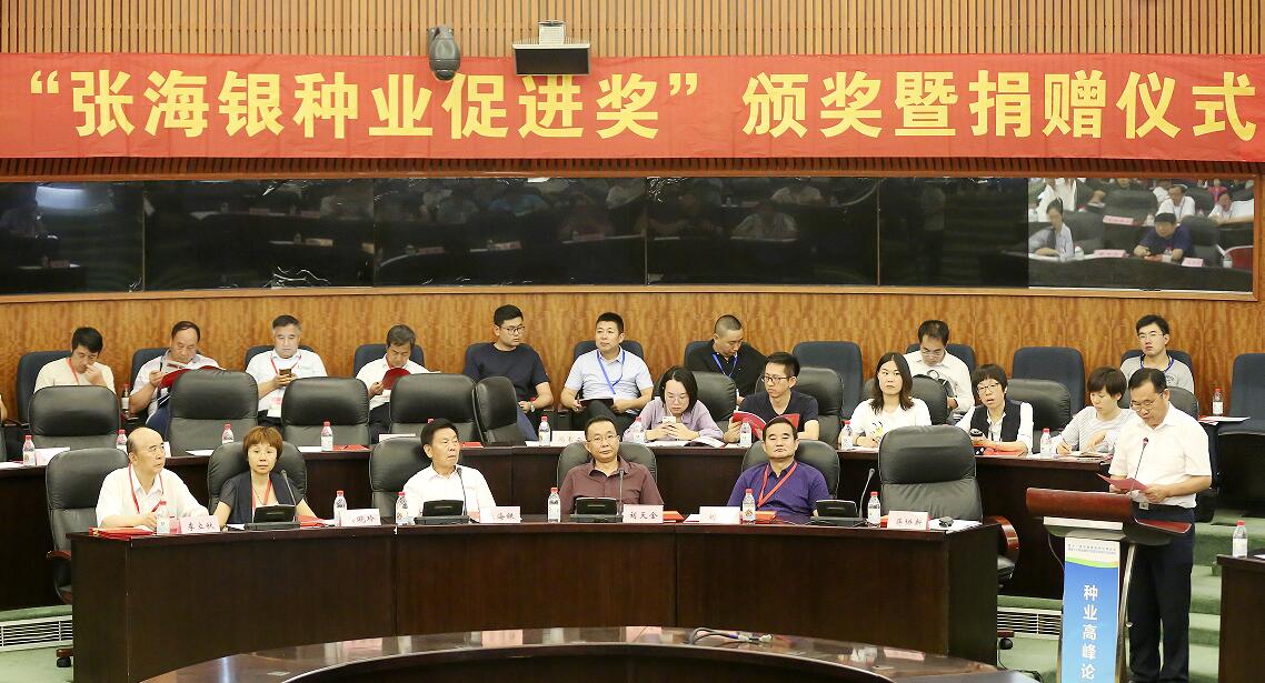 9月16日下午,基金會(huì)2018年“張海銀種業(yè)促進(jìn)獎(jiǎng)”頒獎(jiǎng)會(huì)暨捐贈(zèng)儀式在全國(guó)種子雙交會(huì)(第十一屆中國(guó)國(guó)際種業(yè)博覽會(huì)暨第十六屆全國(guó)種子信息交流與產(chǎn)品交易會(huì))種業(yè)高峰論壇上舉行,來(lái)自全國(guó)各地的種業(yè)工作者約200位種業(yè)工作者參加會(huì)議。