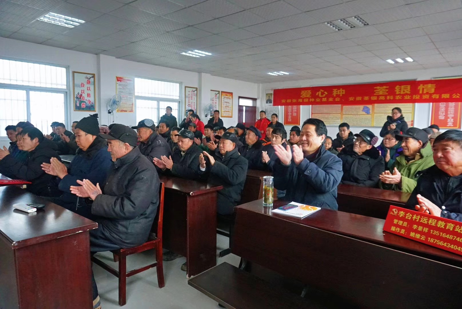 ??? 戴紹江副鎮長代表鎮黨委對此次活動的愛心捐贈和大力支持表示誠摯的感謝!徐中貴副主任在講話中說,壽縣是國家級貧困縣,全縣貧困人口達到13萬人,衷心感謝荃銀農投、基金會和金豐公社三家單位積極承擔社會責任,為貧困戶提供優質良種、化肥和農業技術服務,希望受助的農戶用自己勤勞的雙手和智慧創造幸福生活。