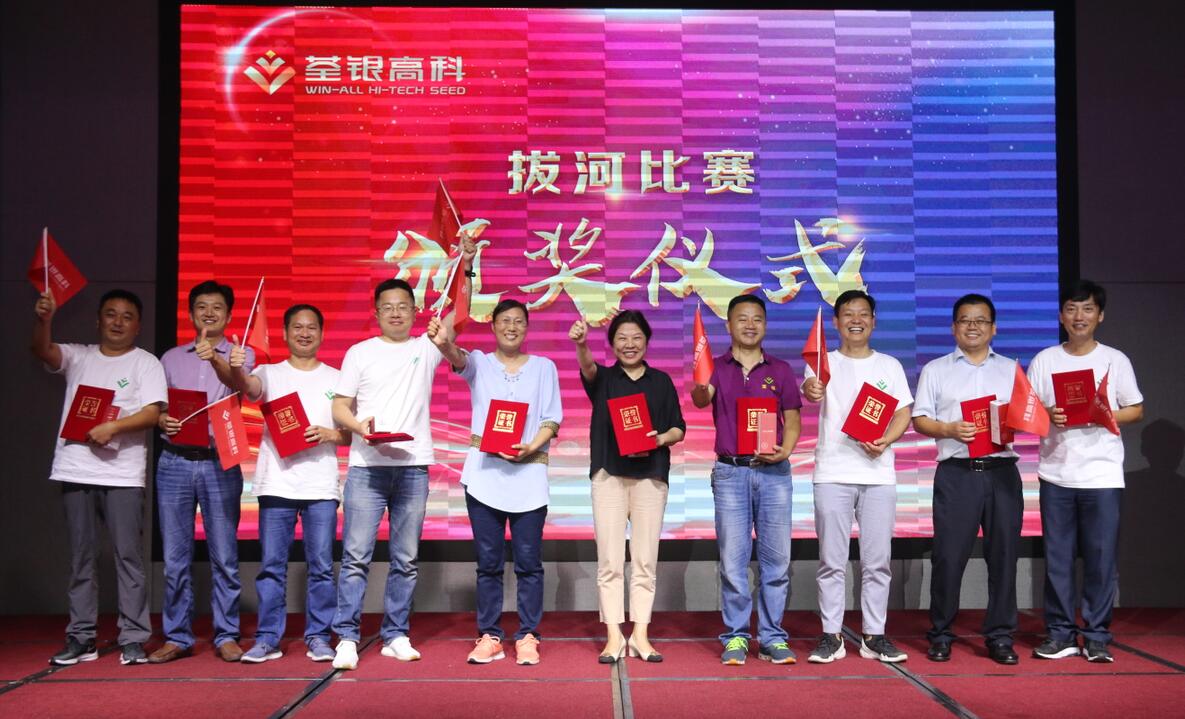 ??? 8月9日,在荃銀高科2019經營年度分析研討會前,公司舉辦了拔河比賽,以凝聚人心,鼓舞士氣。集團公司高管及部門負責人,20家子(分)公司、專業公司總經理、營銷副總經理及財務總監60余人參加此次活動。