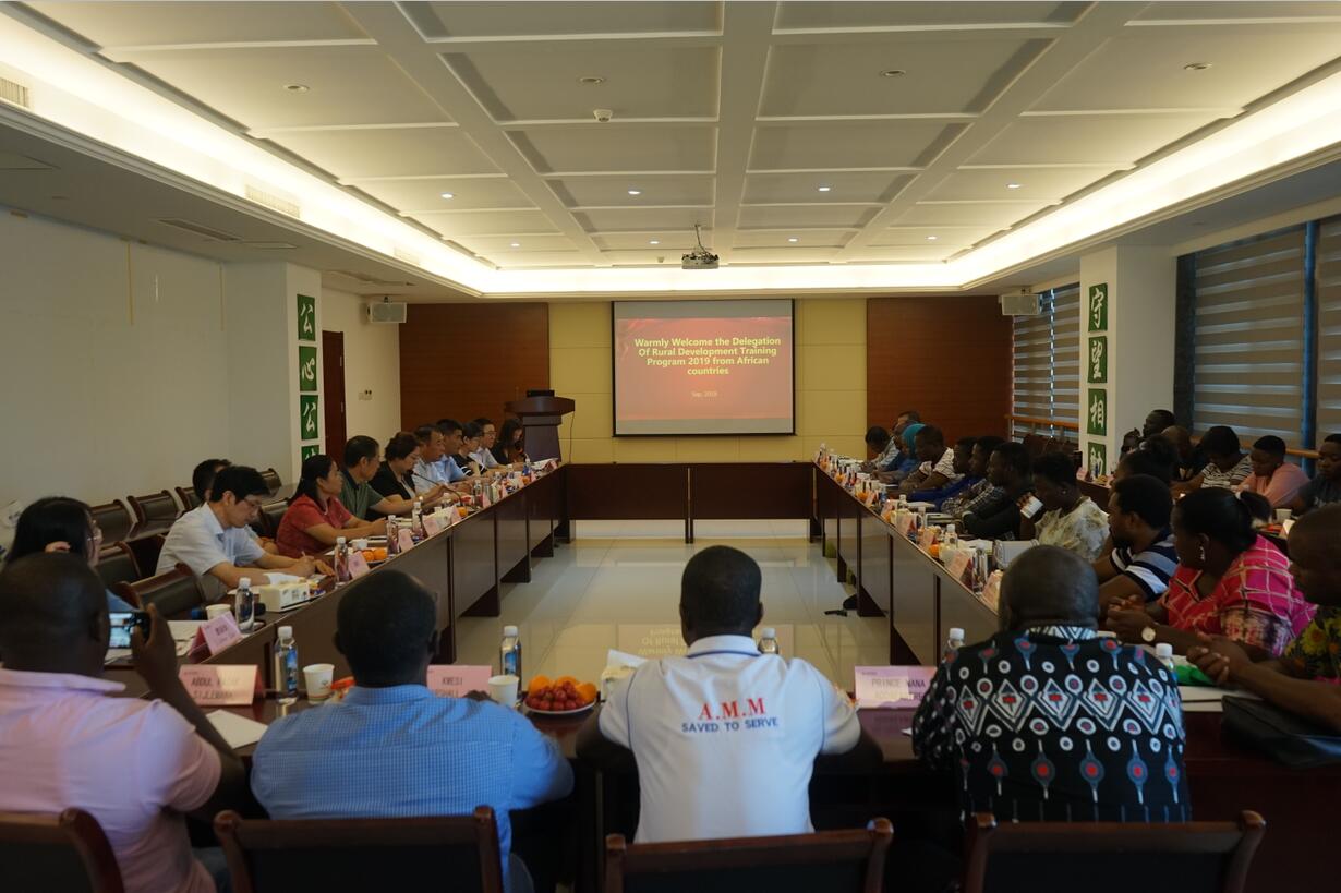 ??? 9月19日,商務部主辦、農(nóng)業(yè)農(nóng)村部管理干部學院組織“2019年非洲英語國家農(nóng)村發(fā)展研修班”蒞臨荃銀高科調(diào)研座談。農(nóng)業(yè)農(nóng)村部管理干部學院對外培訓交流部主任望益群,安徽省農(nóng)業(yè)委員會外事外經(jīng)處調(diào)研員閆玉玲,合肥市農(nóng)業(yè)委員會外事外經(jīng)處處長吳正東等陪同調(diào)研。荃銀高科副董事長、總經(jīng)理張琴,工會主席兼辦公室主任鄭滿生,荃銀科技副總經(jīng)理金毅、總經(jīng)理助理丁松等參加了座談會。